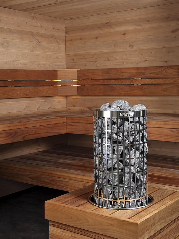 Электрокаменка высотой 130 см вмещает 140 кг камней и прочные нагревательные элементы, разработанные для интенсивной эксплуатации. Вместе они гарантируют, что тепла всегда будет достаточно для каждого, вне зависимости от количества пользователей.